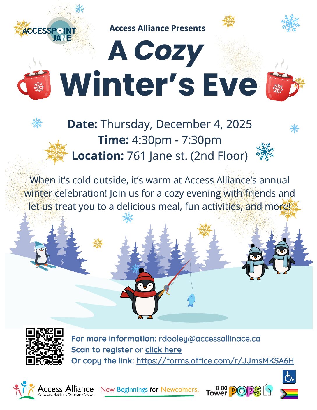 When it’s cold outside, it’s warm at Access Alliance’s annual winter celebration! Join us for a cozy evening with friends and let us treat you to a delicious meal, fun activities, and more!